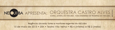 O Grupo de Sopros da Orquestra Castro Alves (OCA), segunda principal formação do NEOJIBA (Núcleos Estaduais de Orquestras Juvenis e Infantis da Bahia), é atração do FUNDART - Festival de Artes da Fundac de 15 a 17 de outubro no Teatro IRDEB (Federação). As apresentações integram a programação do Festival de Artes da FUNDAC – FUNDART 2013.